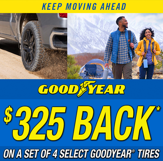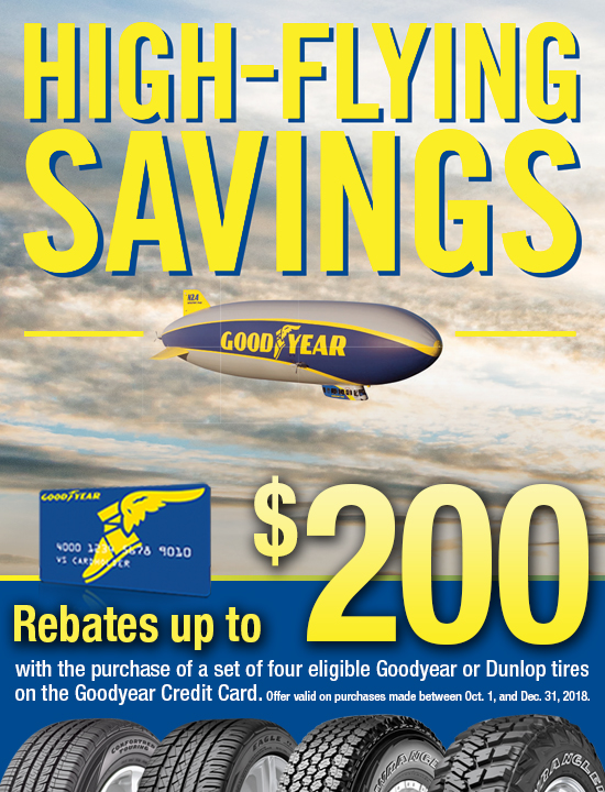 Eligible for $100 mail-in rebate, plus an additional $100 instant rebate when you use your Goodyear Credit Card. $50 rebate for NEW Goodyear credit card accounts(Up to a $250 total rebate)