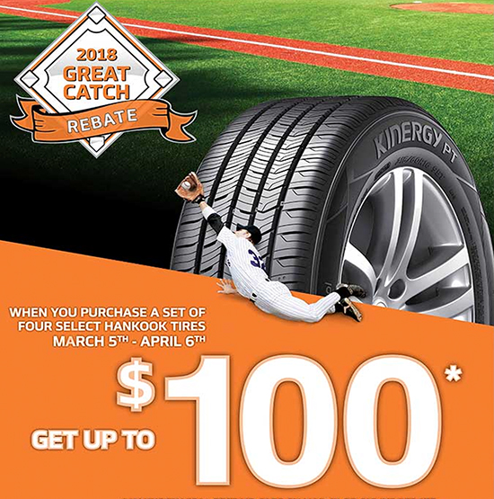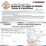 Purchase a set of four (4) qualifying tires between April 8, 2024 and July 7, 2024 and receive up to $120 Hankook mail-in rebate. Submit your rebate online.
